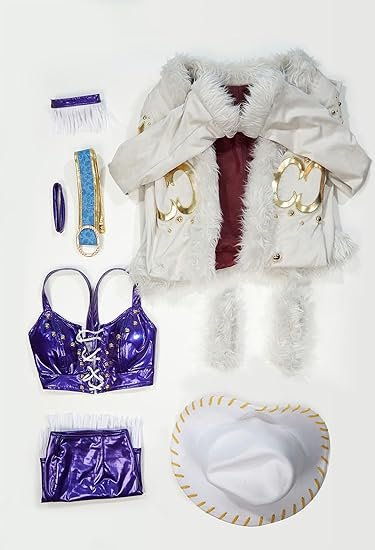 Experience the thrill of adventure with the haikyuu Straw Pirates Anime Costume. This intricate set features a suede and PU leather coat paired with a stunning bra and miniskirt. It embodies the spirit of ethereal spirit through its detailed fringe designs and shimmering studs.